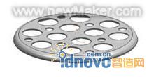底板的设计方法采用成型特征,首先建立圆柱体利用坐标系确定孔的位置并且孔的按钮钻出第一个孔再用引用功能建立
