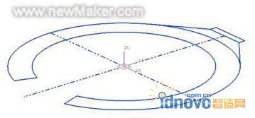 螺旋肋板的设计采用的方法是,根据曲线的导程(导程=螺距x头数)、半径、圈数,首先建立两条螺线曲线并将两条曲线用直线连接,再使用扫描功能建立片体再拉伸为实体。