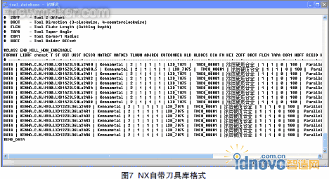 然后再通过Windows应用技巧(复制→粘贴→替换),将Excel电子表格建立的刀具库转换为NX能直接读取的ASCII格式,从而完成刀具库的建立,如图7所示。