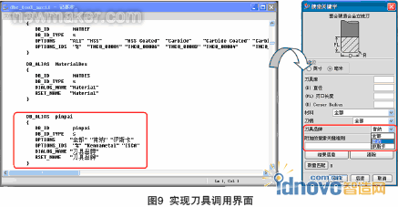 注意,OPTIONS_IDS中的内容必须与刀具库(tool_database.dat)文件中相对应,从而实现对刀具的选择调用。配置完成后,刀具调用界面如图9所示。