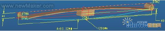 (2) 完成曲线建立以后,在曲线的两端建立两个点PNT0、PNT1 和一个新的基准面DTM4,并且利用新建的基准面DTM4 和其他两个基准面DTM1、DTM2建立一个点PNT2,新基准面DTM4 距基准面DTM3的距离为曲线的弧高,同时在圆弧的弧高Dx 和DTM4 距DTM3 的距离Dy 之间增加一个关系式( IF Dy>0 Dx=Dy ELSE Dx=-Dy )如图所示。