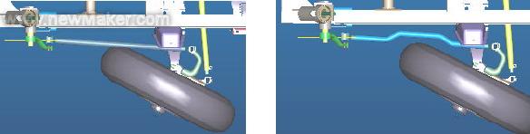 更改前拉杆与前轮发生干涉 更改后拉杆与前轮不干涉