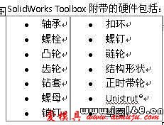 SolidWorks Toolbox是一种简单的、价格适中、可以提高您日常工作效率的标准零件库工具,它与SolidWorks 合为一体。使用 SolidWorks Toolbox,您不再需要翻阅零件目录来查找数值和规格; 不再需要为使零部件适合模型而绞尽脑汁;不再需要每次一个垫圈、一个螺栓、一个螺母地费力层叠它们。