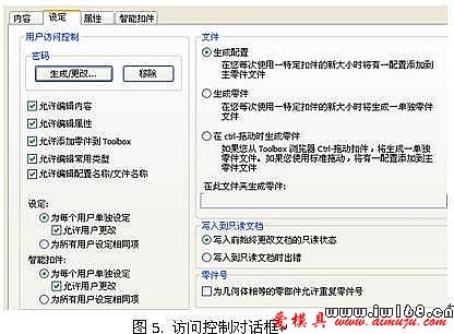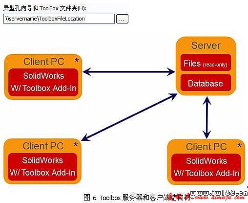 SolidWorks Toolbox可以在多用户环境中应用,在设置数据配置对话框中,单击“生成/更改”后可设置一个Toolbox的管理员密码,随后设置访问权限。
