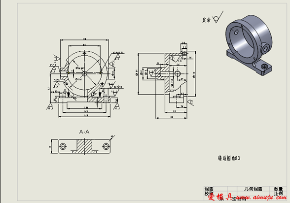 根据图1所示泵体零件图,运用Solidworks 2010创建三维模型(图2所示)及二维工程图(图3所示)。提交此模型的三维模型(图2所示)及二维工程图(图3所示)文件。