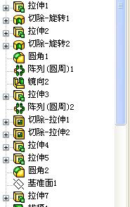 设计零件时把重要特征重新命名,可以使零件更容易被理解,这样修改的时候更容易,也就不容易出现错误,如图4-1、4-2。图4-1的特征树采用默认的特征名称,这些名称只能表达特征的类型,不能表达特征的用途,所以察看、修改模型困难,容易出现错误的修改。图4-2所示的特征树重要的特征被重新命名和分组,特征的功能清楚,查找容易,修改起来也更简单。当然,次要的及装饰性的特征就没有要重新命名了。