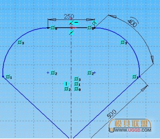 第二步:新建零件,建立弓的基本草图。注意圆弧使用长度约束,就是激活约束尺寸后,先点弧两端再点弧本身。而弧的半径不约束,拖动可以达到以下效果。