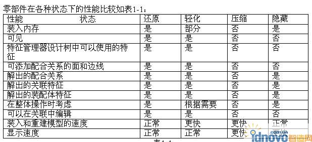 轻化状态:零部件的模型信息部分装入内存,只在需要时才装入内存并参与运算;