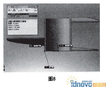 测量方法如图8所示,建立螺旋套筒和螺旋叶片的装配图,点击视图/显示,剖面视图,分别选择前视和右视基准面,得到装配体的剖视图,点击工具/测量,然后点击螺旋叶片剖面上的点与螺旋套筒底部端点,测量相应的距离。