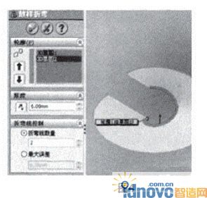 步骤6:选择插入/钣金/放样的折弯,选择成的折弯和一条边线,确定后生产螺旋叶片的展开图如图5。