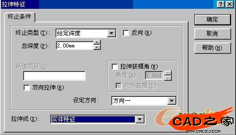 2、保持草图处于激活状态,单击特征工具栏上的 nclick="if(this.width>screen.width-461) window.open(" height=32 src="http://www.iforchina.com/picup/031/050614091352901.gif" width=34 onload="if(this.width>screen.width-460)this.width=screen.width-460;" border=0 031 picup www.iforchina.com http: 050614091352901.gif?);?>,出现对话框。