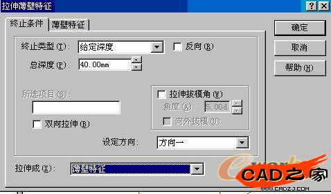 ●拉伸薄壁特征:相当于pro/e中的:create-protrusion-extent-thin