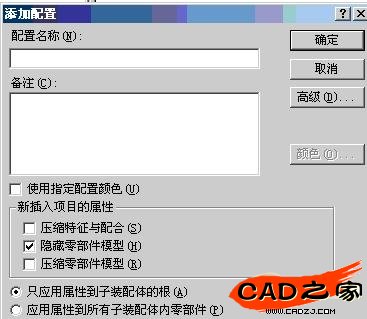 o 压缩特征和配合关系。复选该选项时,添加其他配置的新配合关系和特征在此配置中会被压缩。否则,新配合关系和特征在此配置中被解除压缩。