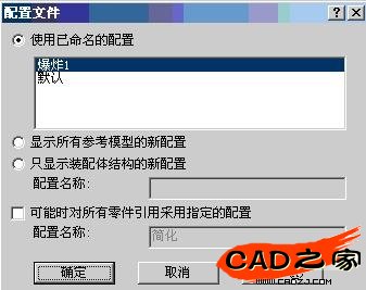 2 选择您要的装配体文件,单击配置,再单击打开。配置文件对话框出现。