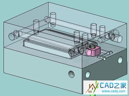 8.余下的就是单独打开这些分割出来的文件,加冷却水、加定位,加螺丝孔,加流道、进胶口