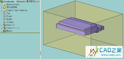 2.将这个零件插入一个装配中,然后再建立一个分模的过程文件:如Core.sldprt