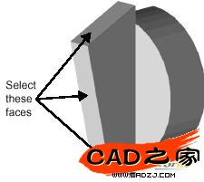 3、选择图示的三个面作为拔模面: