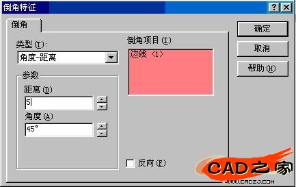 确定倒角的距离以及角度。点击确定,