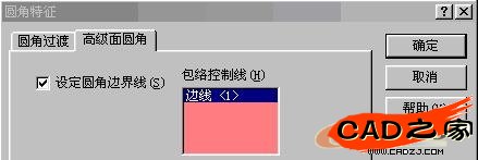 点击"高级面圆角"标签,选中:设定圆角边界线,并选择上图中的HODE LINE作为:包络控制线,点击确定。