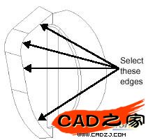 选中零件圆形底面的边,点击倒角按钮