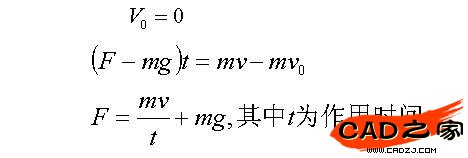 从第二幅图中我们可以得出,重物从触地那一刻到速度变为0这一过程中,时间t=0.027S.这样,我们就精确的得出了重物作用的时间.将时间t=0.027S代入上述公式中得出: F=84622N。