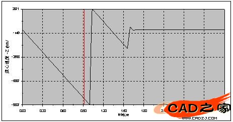 运行运动仿真,得出重物下落过程中时间与速度曲线图