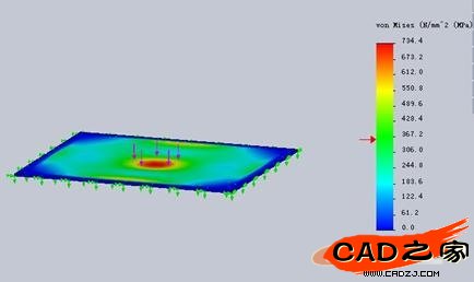 从上述分析数据中我们发现,当车棚厚度为15mm时,产生的应力最接近材料的屈服强度且小于屈服强度,所以最终设计我们选择车棚厚度为15mm.