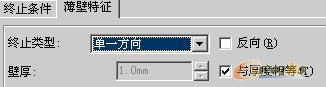 5、出现对话框,注意薄壁特征中的"于厚度相等"选项