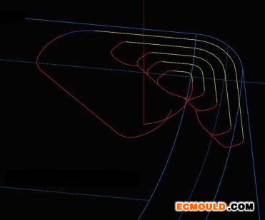 图。3 - 在粗加工期间在几何图形的尖角或紧挨拐角中添加半径,如右图所示,可以保护切削刀具不会在拐角处过载。这有助于防止工具磨损或断裂,这可能负面地影响熄灯加工操作。