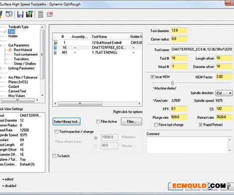 优化高速粗加工的额外考虑是具有简化必要计算的功能的CAM系统,例如包括滑动条的CAM软件,其动态地填充给定宽度的切割的速度和进给调节。所有的数学运算都是由软件完成的,所以程序员可以快速,轻松地使机器运行起来。