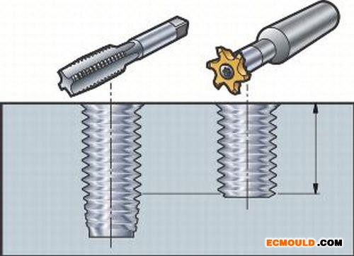 为了在CNC加工中心上切割一系列螺纹孔,许多模具制造商到达龙头。它们价格便宜,易于编程,性能相当可预测。不幸的是,龙头也有一些缺点,特别是当用于坚韧的材料,如A6或预硬H13工具钢。任何人试图从这些材料中删除一个将证明水龙头容易破碎,一般来说,他们是一个真正的挑战提取。此外,当螺纹孔最终尺寸过小时,挽救它们的唯一方法通常是使用H5或H7尺寸的水龙头和一些冗长的返工的紧急订单。和管螺纹?这是一个完全不同的故事。必须有一个更好的方法。