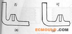 D. 脫模時,心型銷受收縮力,使成形品頂出時造成破裂,可設置凸彀承受頂出力量