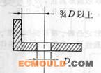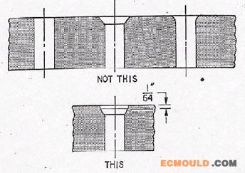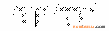6. 孔徑不變的通孔不宜設計為兩邊對合成形﹐會產生偏心﹐可將任一邊的孔徑加大﹐或設計為不用對合成形的孔