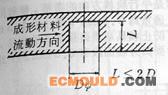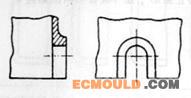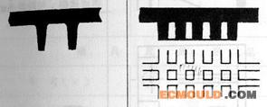5. 垂直于材料流動方向的盲孔﹐孔徑在1.5mm以下時﹐孔深不得超過孔徑的2倍(只有一端支撐的模仁梢比起兩端都有支撐的模仁梢會高出48倍的變形量)