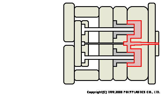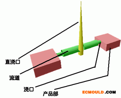 成形品是由流入融化树脂的浇口、导入模槽的流道与产品部份所构成。由于一次的成形作业只能作出一个产品,因此效率不高。若能利用流道连结数个模槽,就可同时成形数个产品。