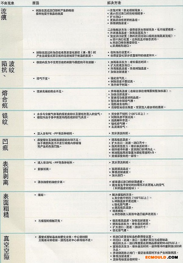 已溶解的材料是从浇口进入模具内,再经由流道与流道口填充到模槽内。接下来则经由冷却工程与开模成型机脱模杆上的模具脱模板,推顶出成形品。
