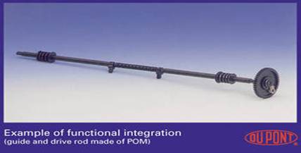 图3中,牵引棒、弹簧、锯齿、卡扣和轴承都为一次注射成型。而同样的金属设计则需要不少于5个独立元件来组装,并且当轴杆与活塞连接时,还需要润滑。实际上,在这一环节使用聚甲醛树脂便可以不用另加润滑剂。