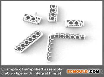 图4中所示的电线缆扣设计中是将卡扣配合活接铰的设计,将生产成本降低及令装配更容易,若使用比较脆性材料,则可用另一卡扣来取替活接铰设计便可。