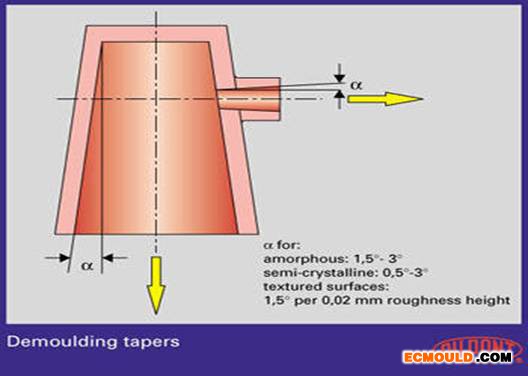 模具制造的必须相对严格地遵守。设计者应切记,脱模斜度的重要性在于它能使脱模容易及防翘曲(见图3)。