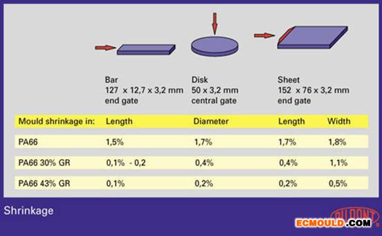 塑料制品的几何形状对收缩也有影响,进而影响到(图4)。
