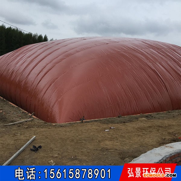 一种专用耐老化人造革高频热合而成。这种革有抗蠕变、剥离强度高、气密性好、耐老化等特点。正常情况下我们弘景环保生产的红泥沼气袋可防冻(-20°C)、防暴晒(50°C)、耐酸碱、防雷、抗震、抗撕裂,隔离火等。经过数据检测是20年,但目前来说使用15年没任何问题