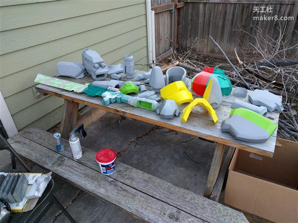 最终,根据其设计,她3D打印出了所有大约80个不同的部件。但是更难的还在后面,所有这些部件都需要进行后处理,首先用填泥料填补层间的缝隙,然后用砂纸打磨。打磨之后,上一层底漆填料,然后再用砂纸打磨,然后再喷,再打磨,逐步换上更细的砂纸——通常需要大约五层底漆。“这一过程是最耗费时间的。”她承认说。