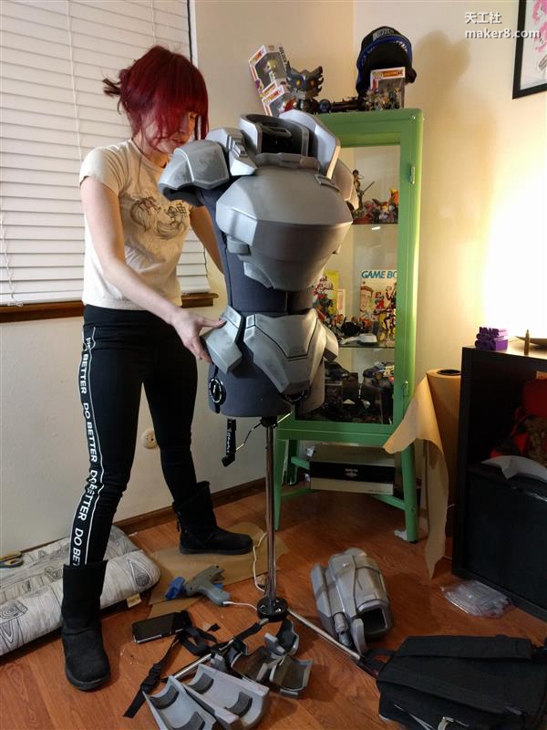 但是,Bindi自己有一大优势,那就是她在去年的CES上用Shapify为自己进行了一次全身扫描,构建了自己的3D数字模型,从那以后,她就经常以此为基础创建自己的3D打印服装。“如果你想3D打印自己的盔甲/道具,我极力推荐你先对自己进行一次3D扫描。您甚至可以使用微软的Kinect做一个扫描。”她说。得益于其精确的3D扫描文件,Bindi得以实现完美比例的盔甲部件,由于桌面3D打印机所能打印的最大尺寸有限,每个3D打印部件的大小也相应地受到了限制。